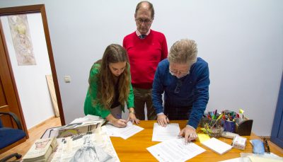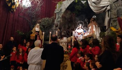 En la mañana de Hoy 28 de Diciembre, varios miembros de nuestra Junta de Gobierno y Hermano Mayor a la cabeza, fueron recibidos con gran cariño y fraternidad por la Hermandad de la Entrada en Jerusalén. A las 12 del Medio día ambas corporaciones rezaron el Ángelus presidido por el Rvd. P. D. Roberto Romero